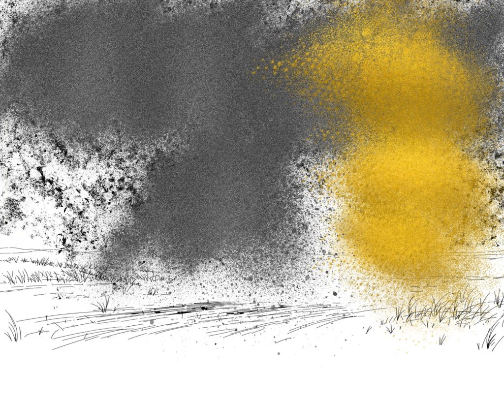 Le dragon est donc un train. L’étrangeté de son irruption dans la lande nous saisit comme sont saisis les conducteurs de la machine confrontés à l’improbable surgissement de chevaliers dressés dans le brouillard, vestiges d’un autre temps.